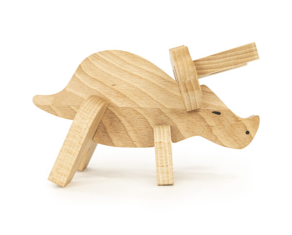 This toy is composed by a board with holes like a paleontology excavation, in them the child will find pieces of wood to build a cool Triceratops. There are many ways in which you can use this toy to play and tickle the curiosity, sorter skills and the never-fading excitement for the dinosaurs and the creatures from the past.